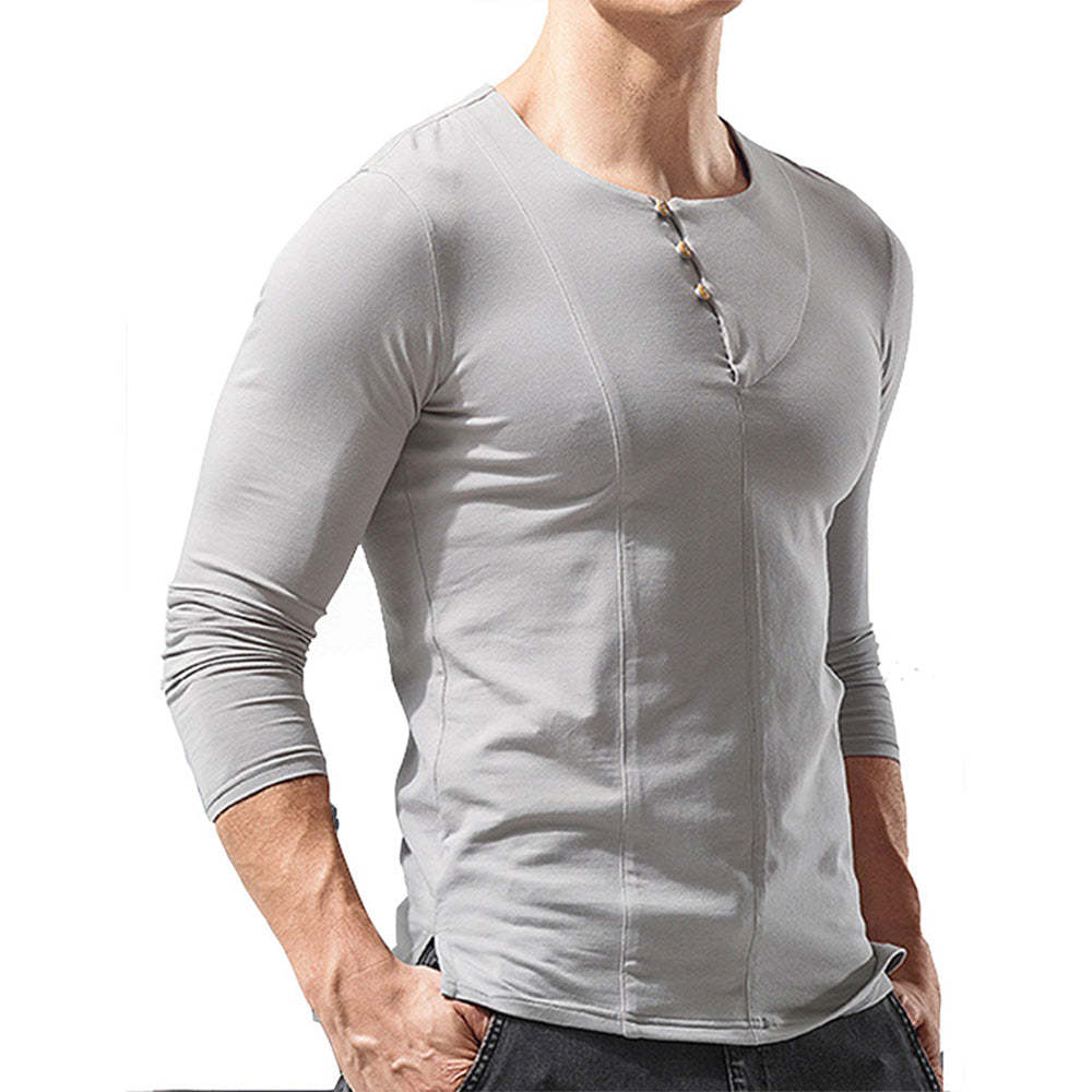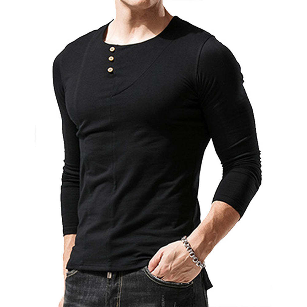 Men's Round Neck Button Long Sleeve T-Shirt Function 【High-quality fabric】: S elected soft and breathable colored cotton fabrics, comfortable and stylish, with moisture-wicking effect, washable and wear-resistant, and high-quality texture. 【Round neck button design】: Exquisite round neck with retro button design, fashi