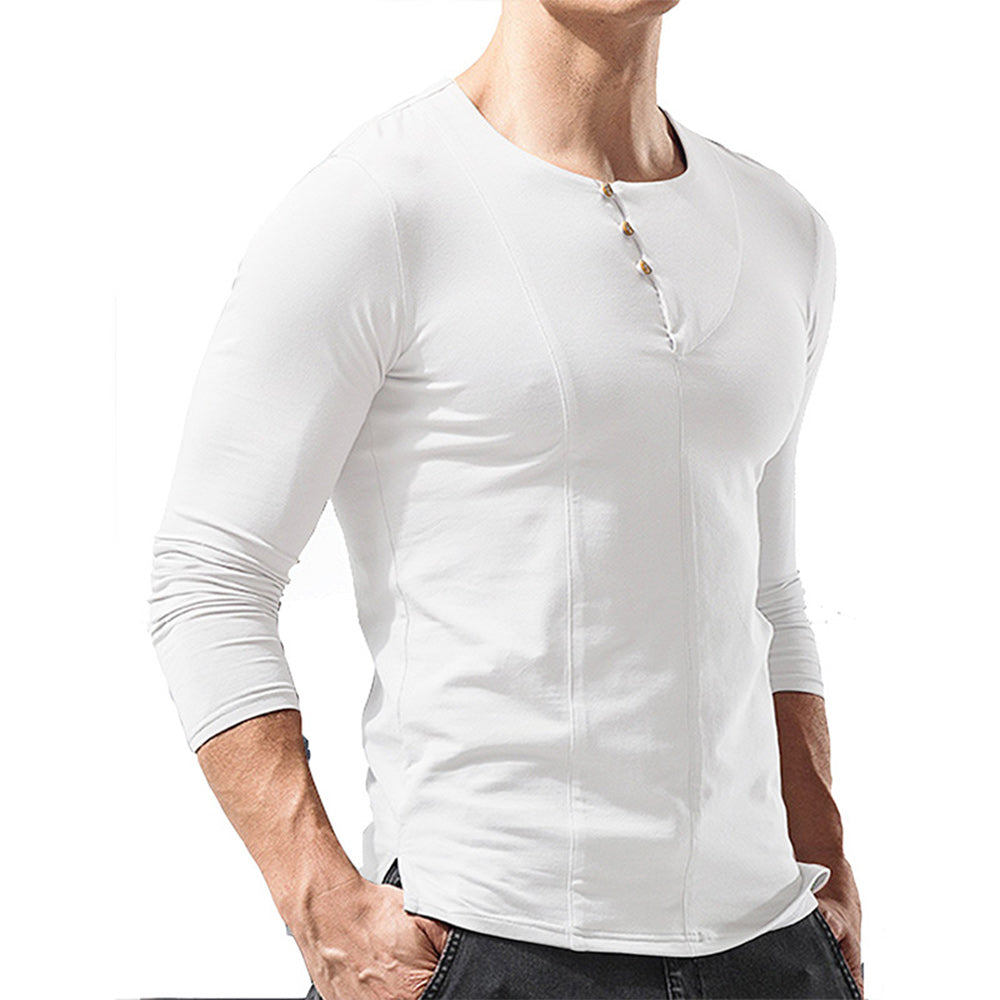 1 * Men's Round Neck Button Long Sleeve T-Shirt