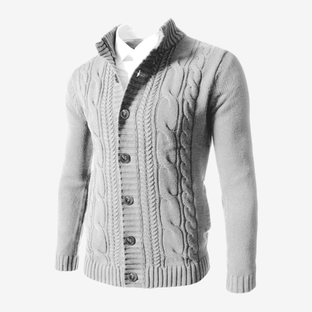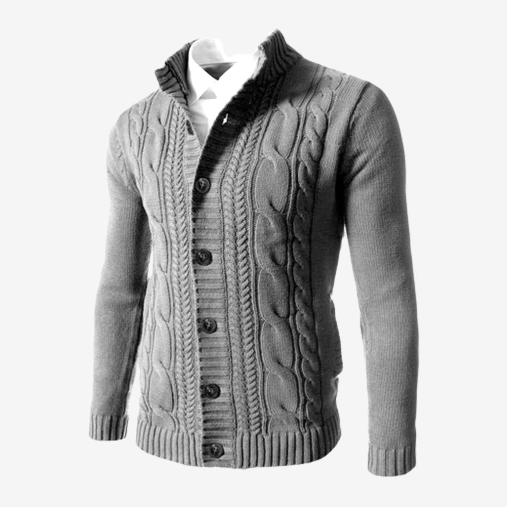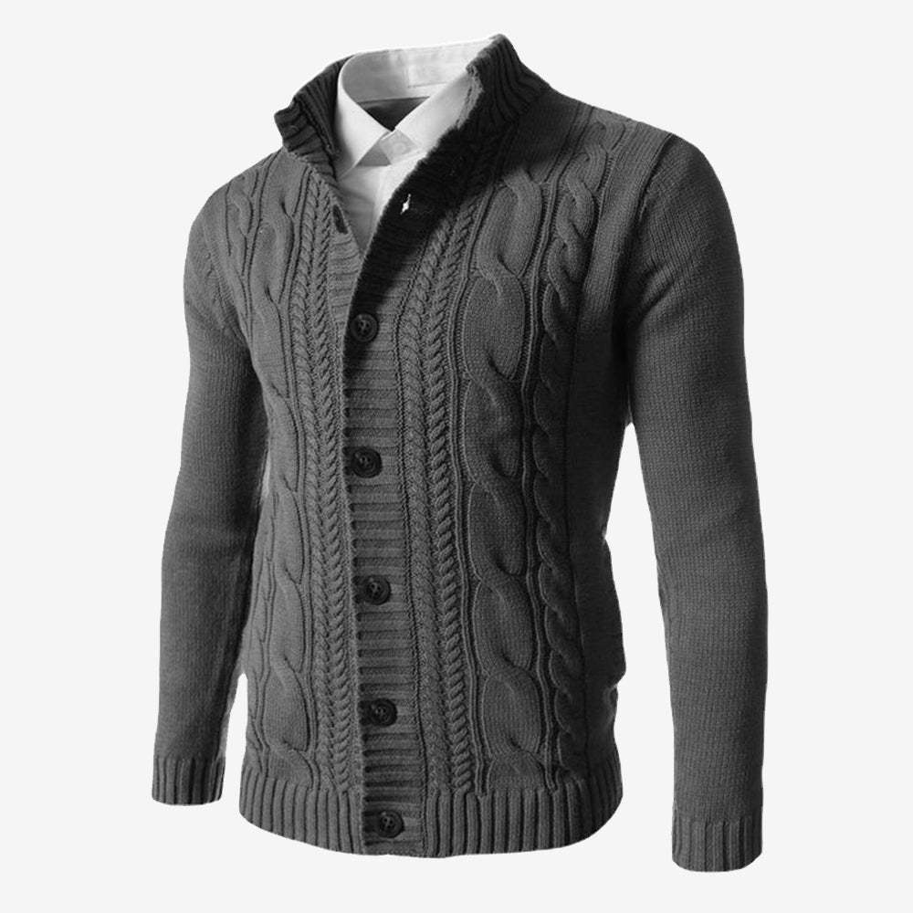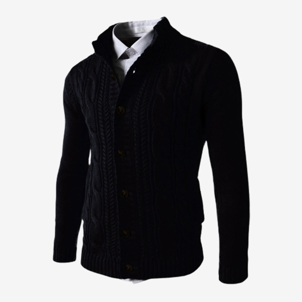 Men's Standing Collar Twisted Button Sweater Cardigan