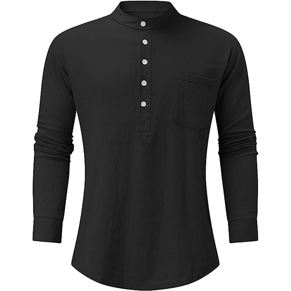 Men's Long Sleeve V Neck Casual Beach Linen Shirt