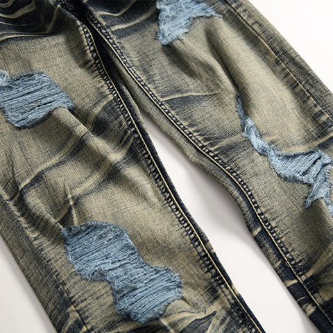 Autumn men's stretch ripped jeans