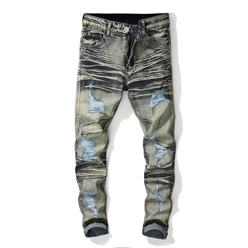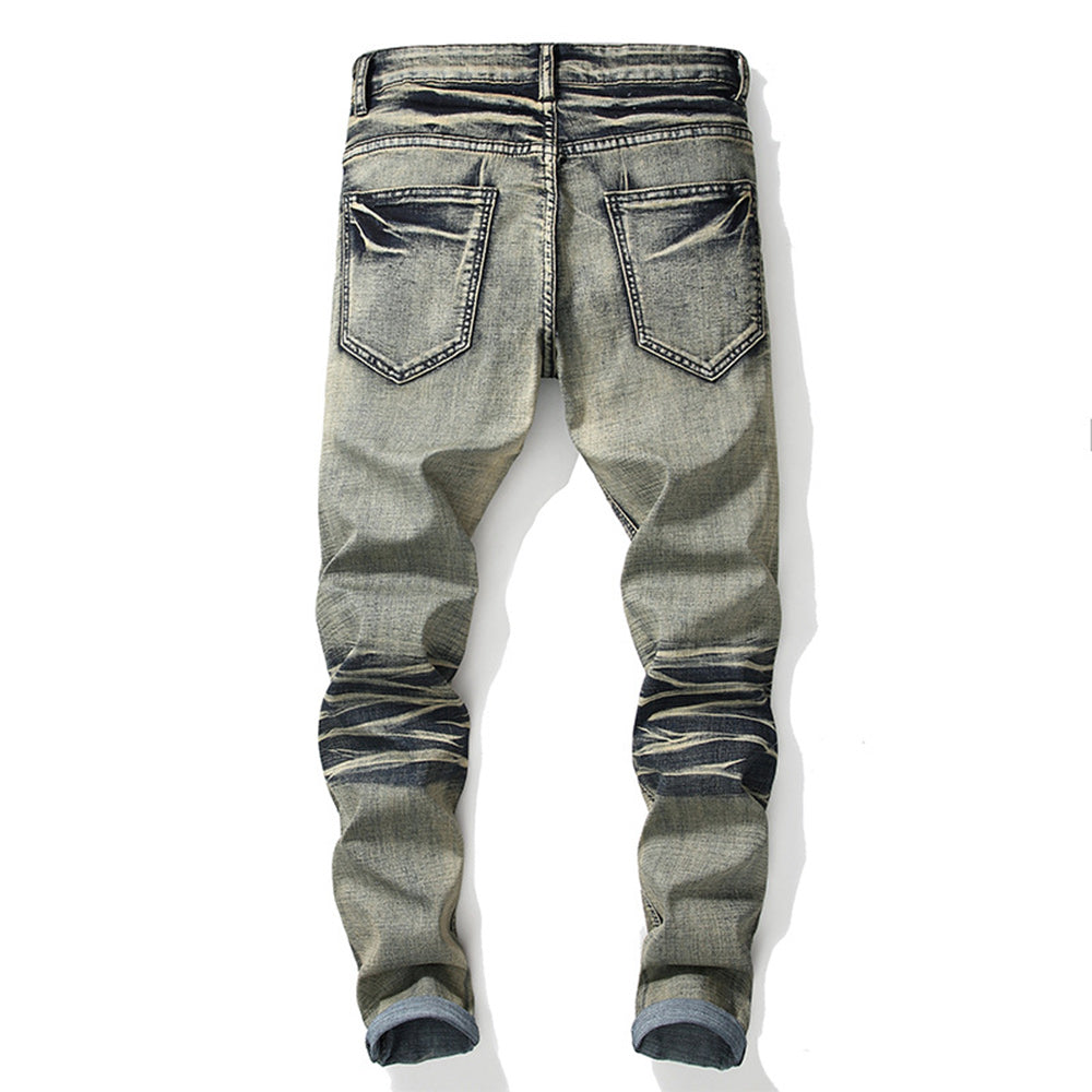 Men's Fashion Metal Buckle Personalized Skinny Denim Trousers