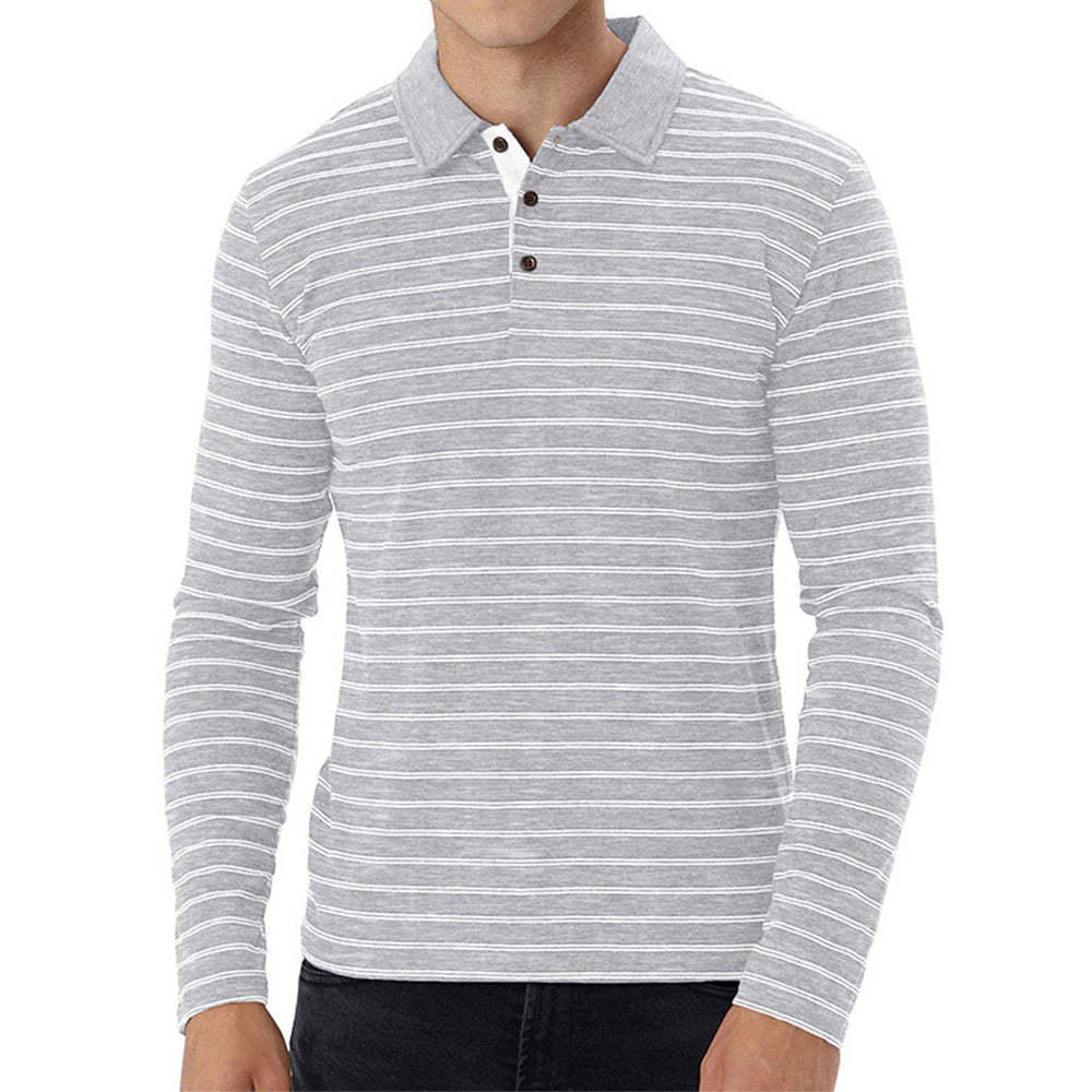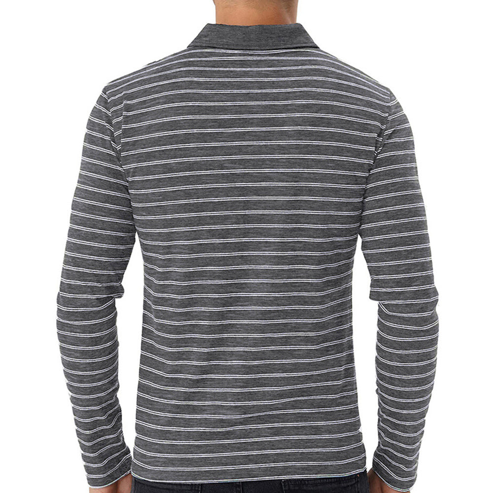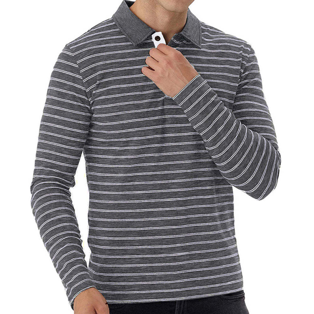 New Men Striped Casual Breathable Long Sleeve Polo Shirt