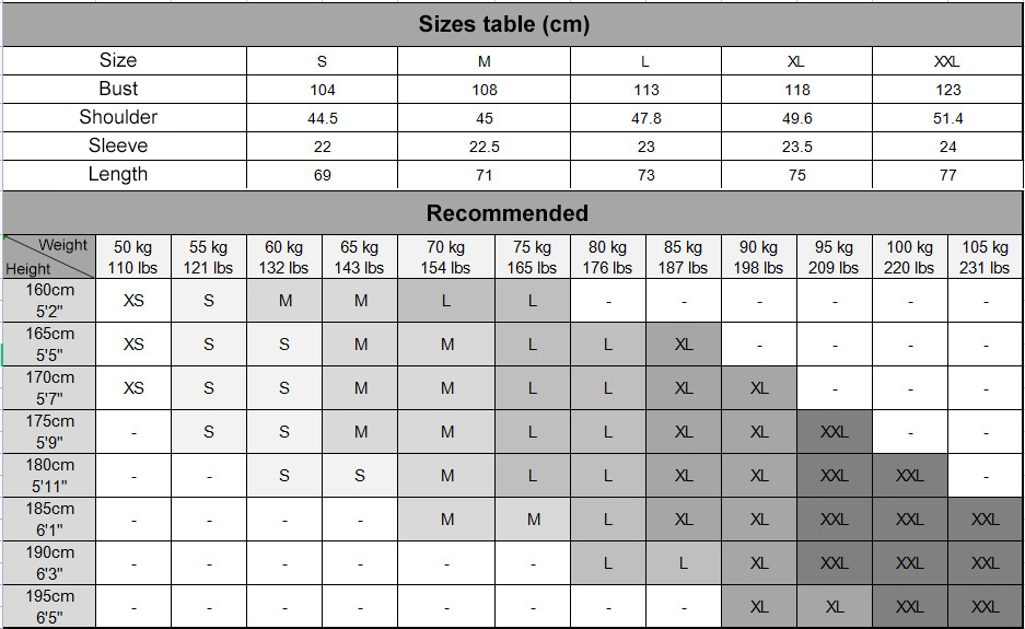 • Sizes: S, M, L, XL, XXL