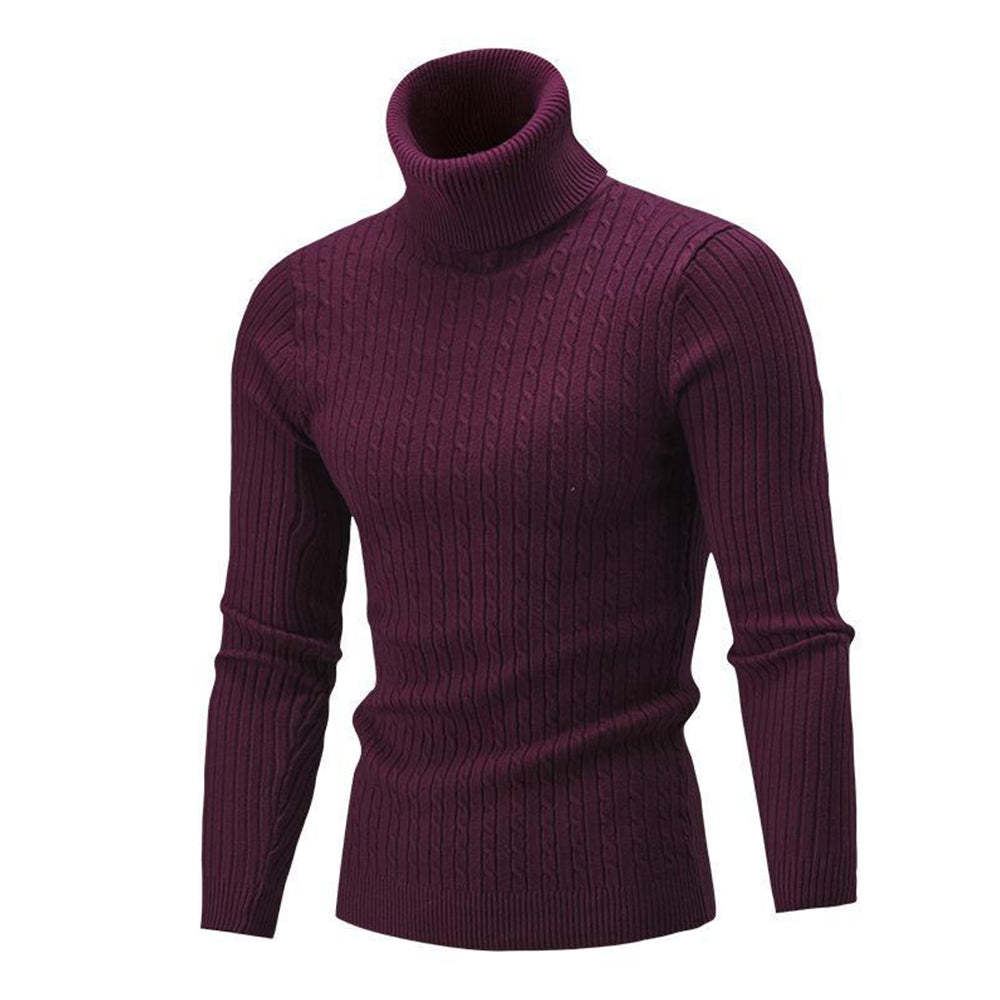 • Autumn/Winter Men's Turtleneck Solid Color Knit Pullover Sweater