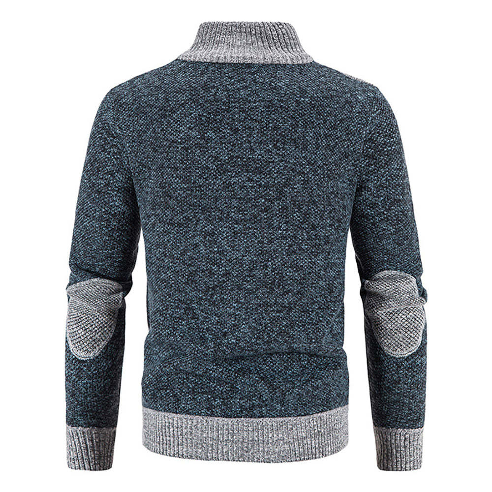 1 * Men's Warm Fashion Stitching Fleece Knitted Cardigan