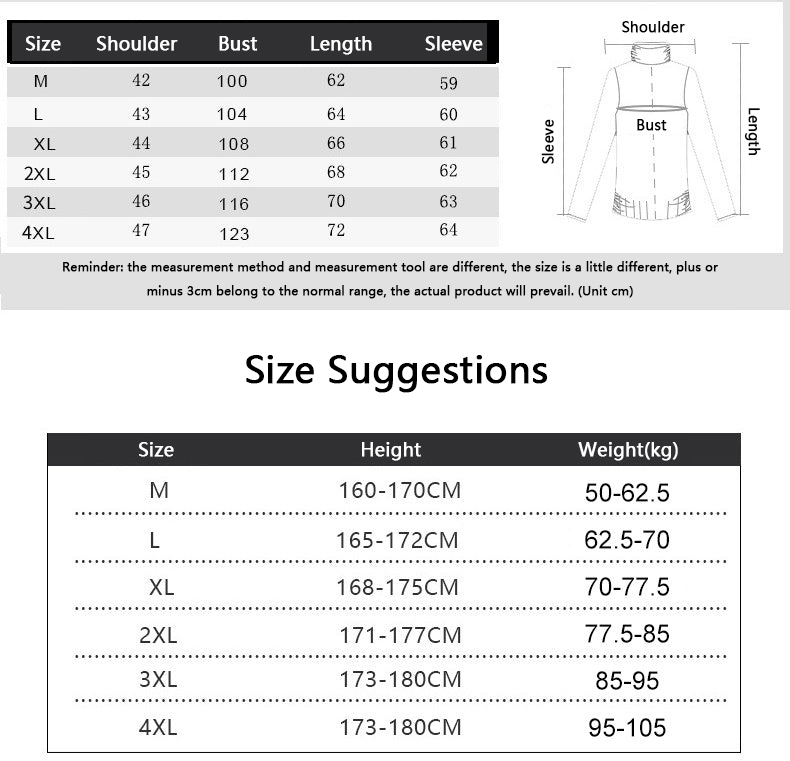 • Sizes: M, L, XL, XXL, 3XL, 4XL