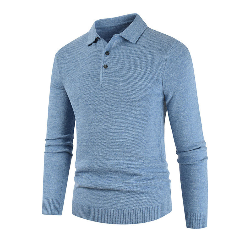 1 * Men's Button Lapel Solid Color Slim Knitted Base Layer Shirt