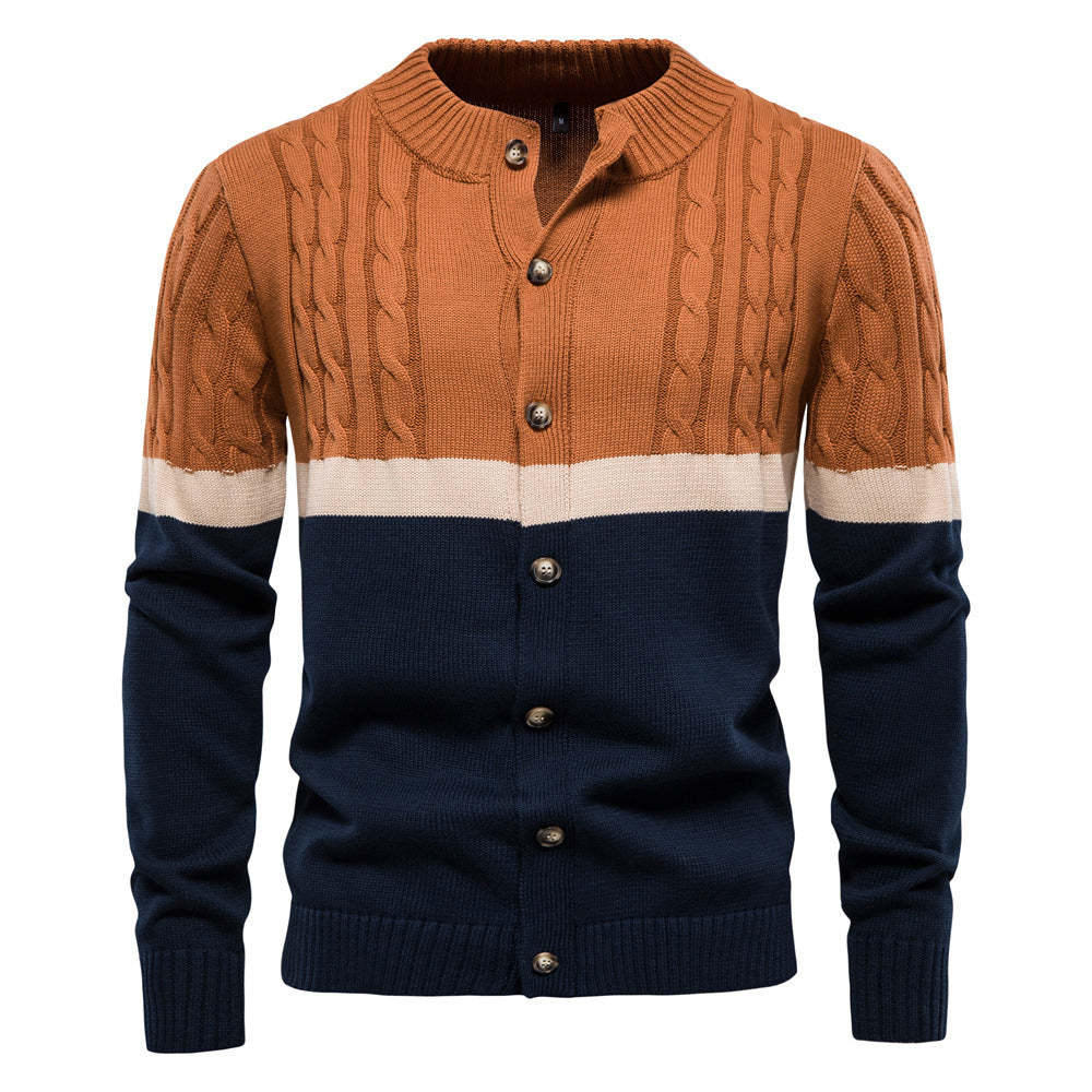 Men's Colorblock Cotton Long Sleeve Cardigan