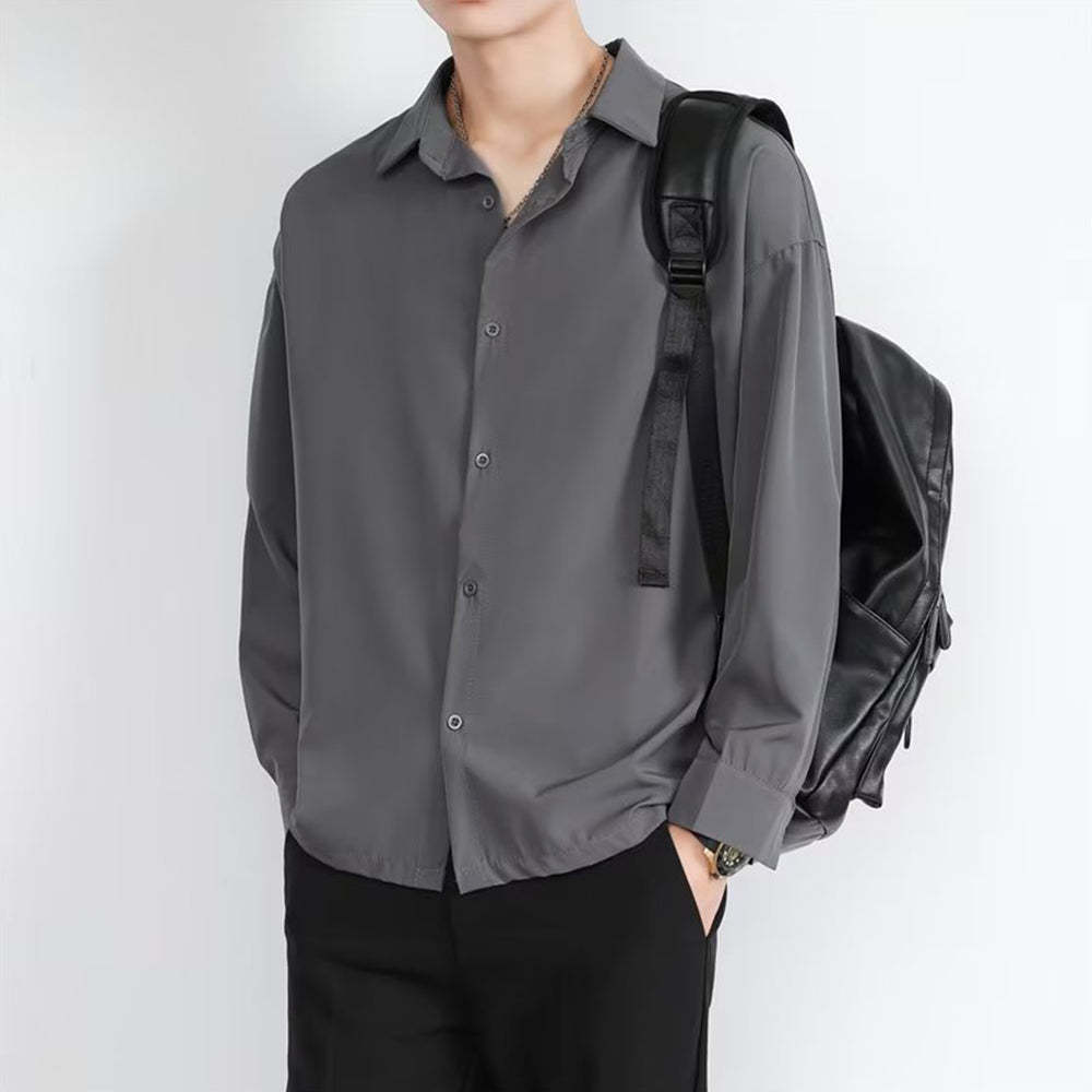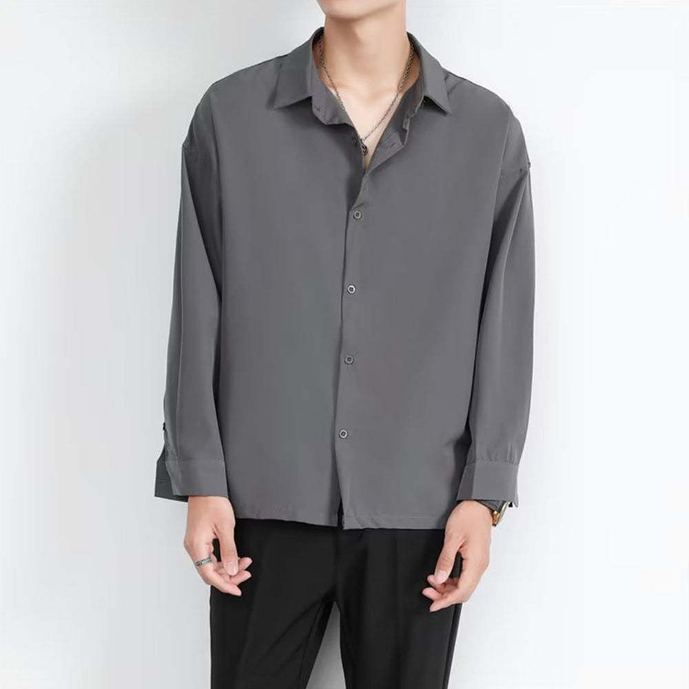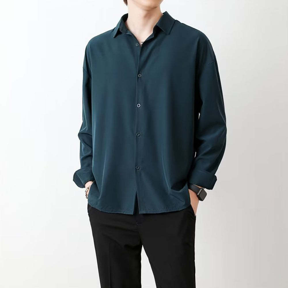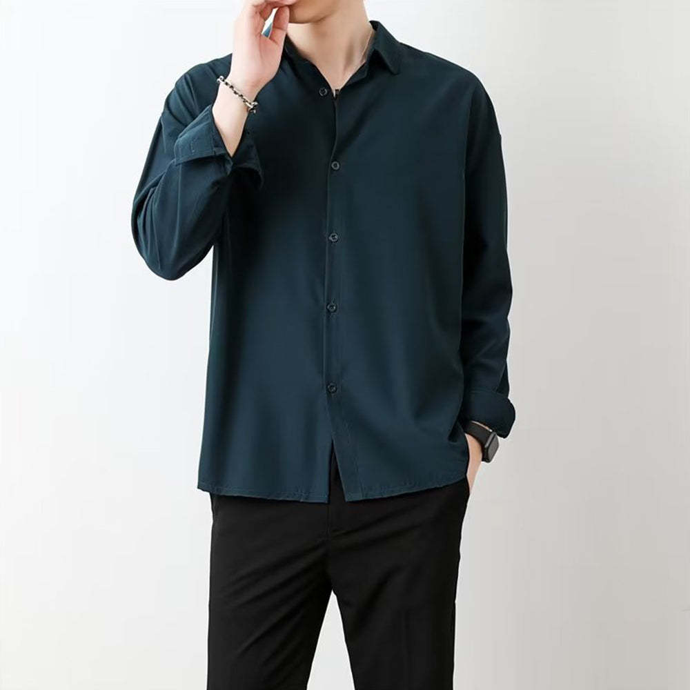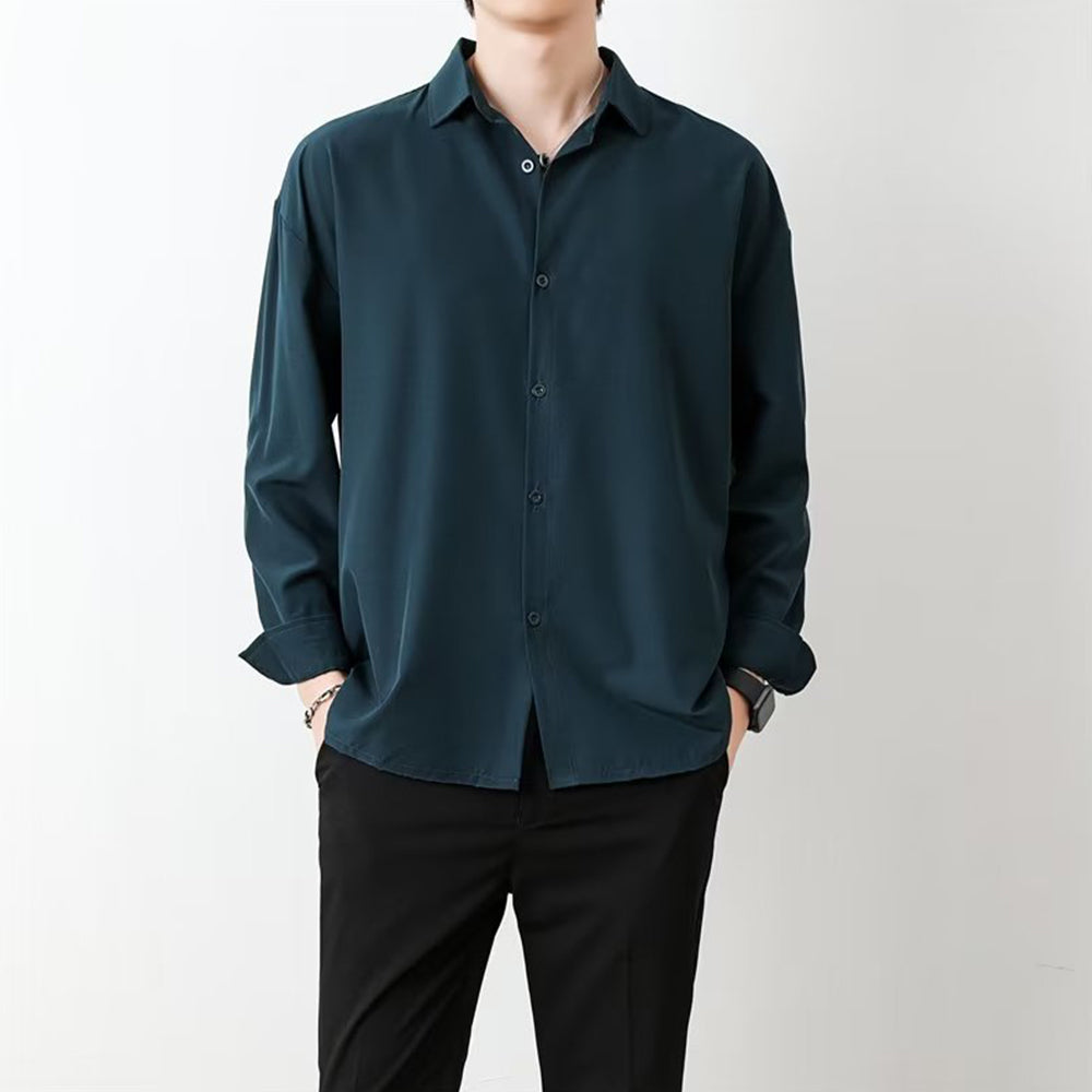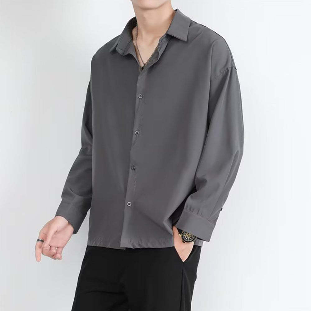 • Loose Men's Comfortable Casual Solid Color Long Sleeve Shirt