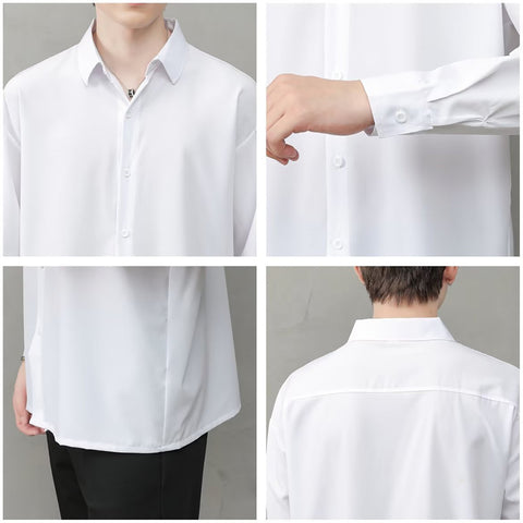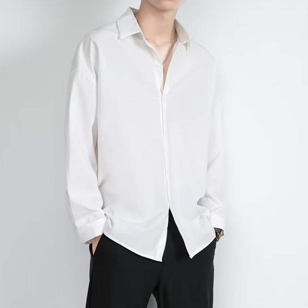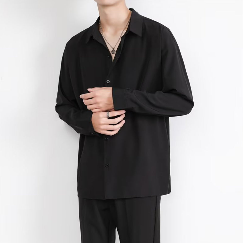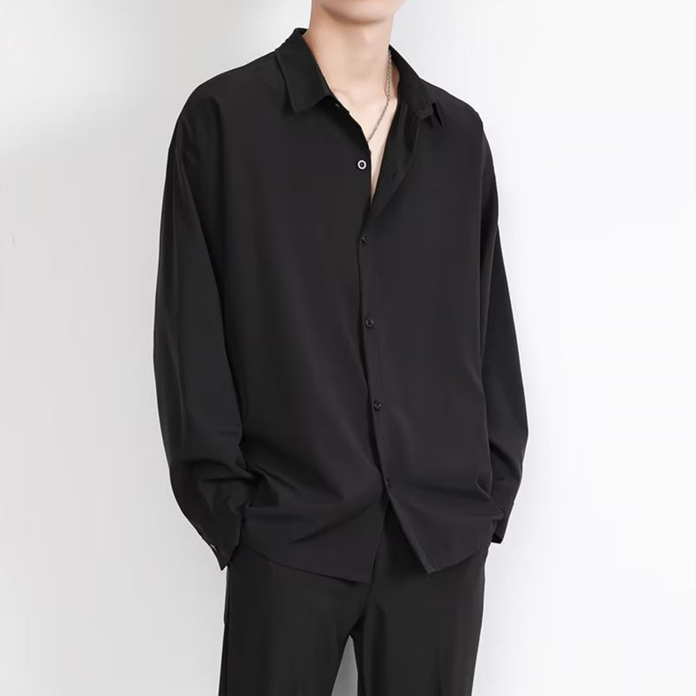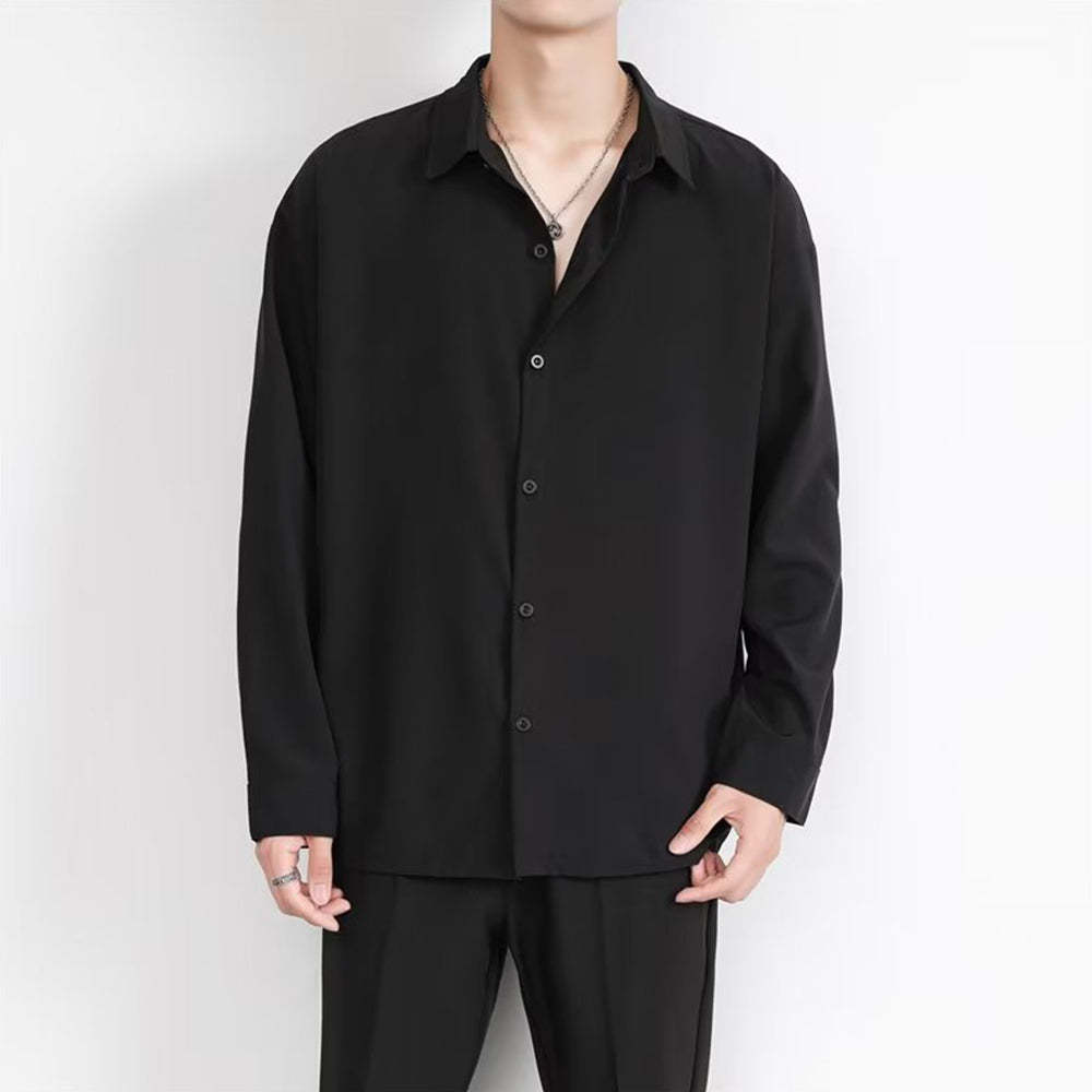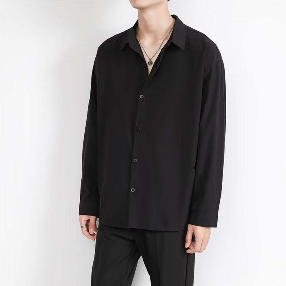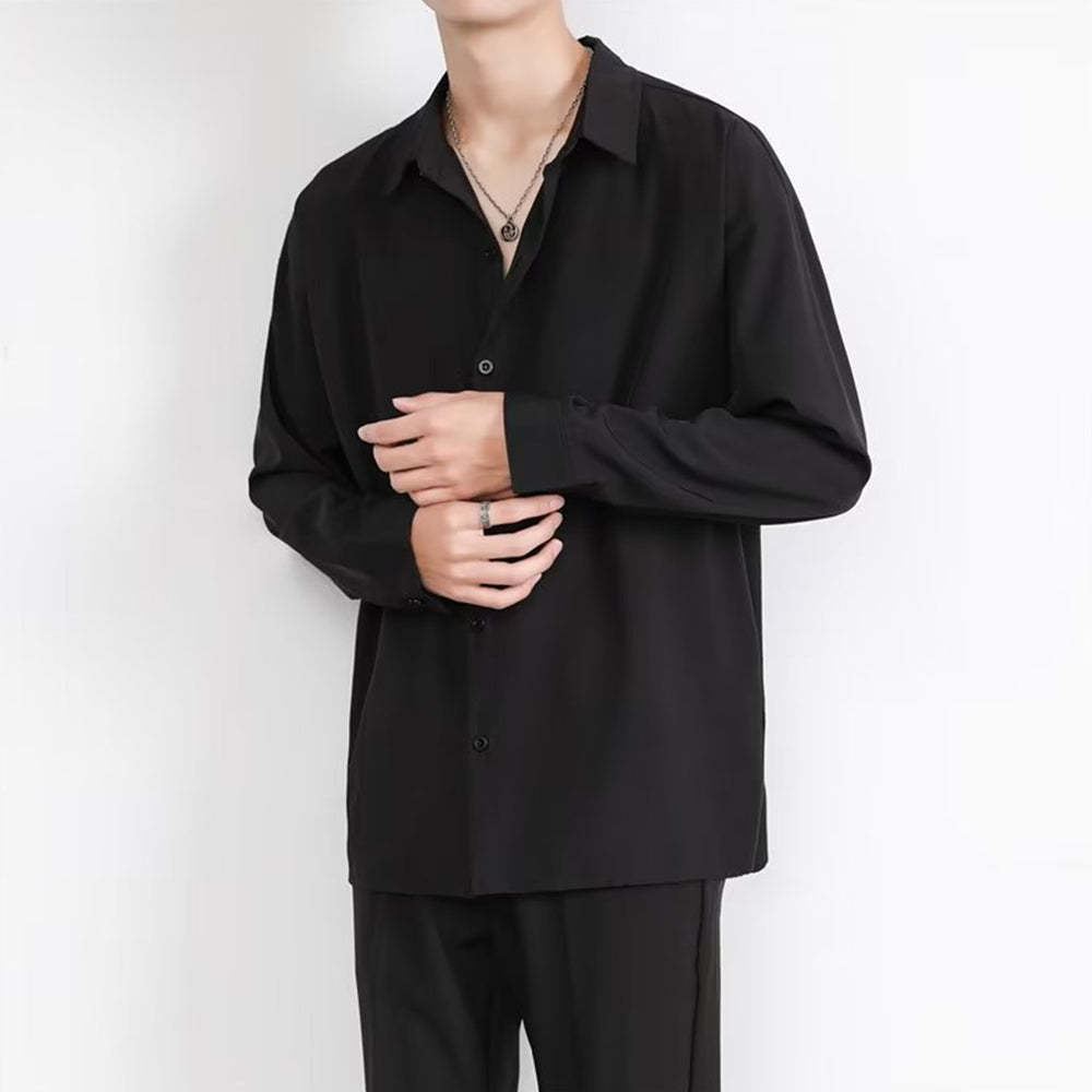 • Loose Men's Comfortable Casual Solid Color Long Sleeve Shirt