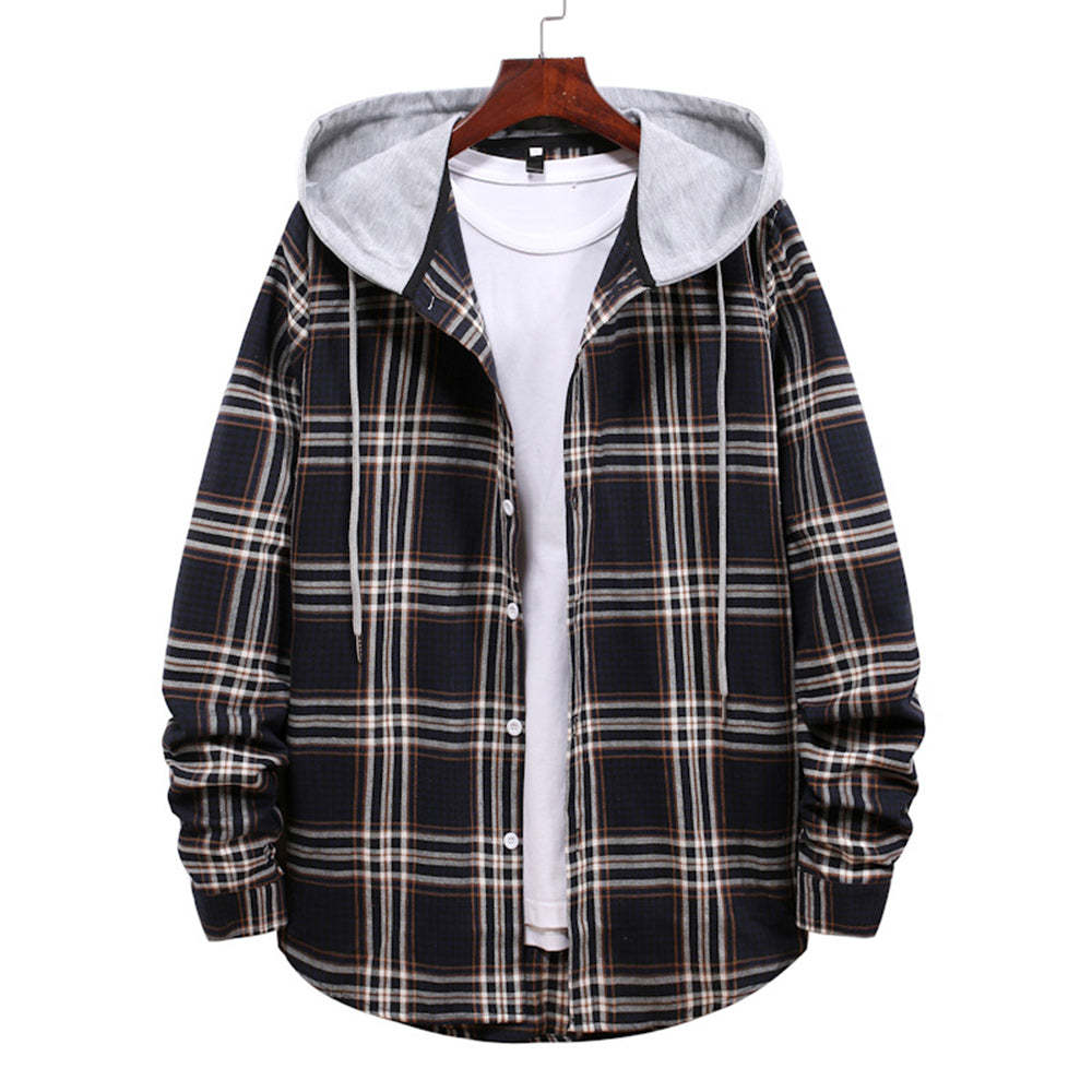 1 * Men's Plaid Hooded Long Sleeve Shirt Jacket