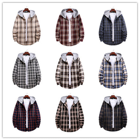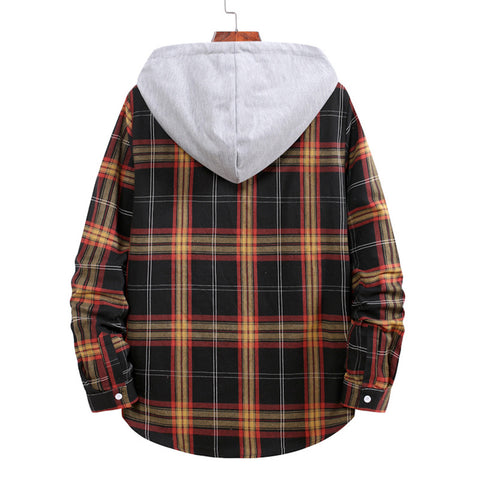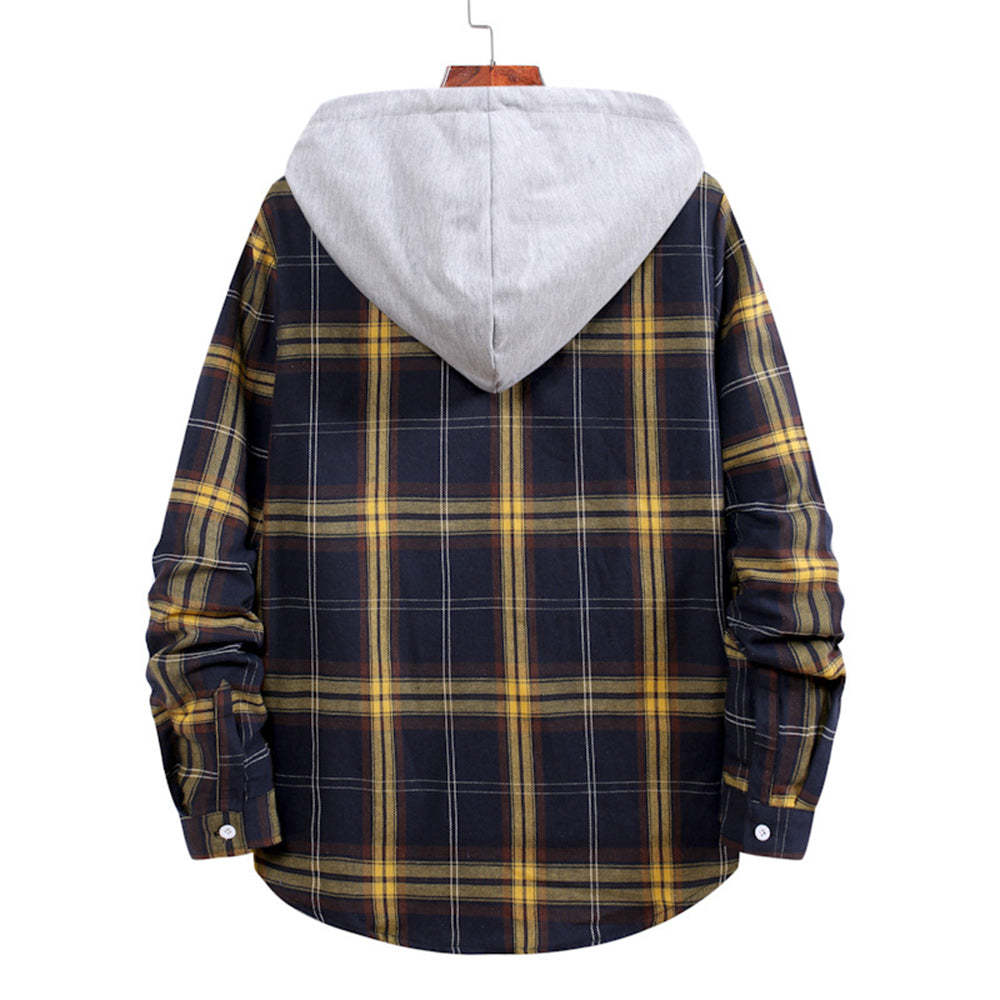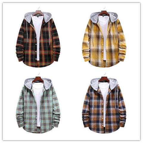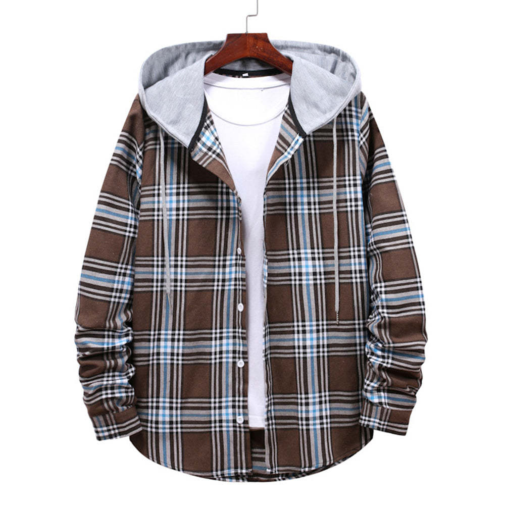 • Men's Plaid Hooded Long Sleeve Shirt Jacket