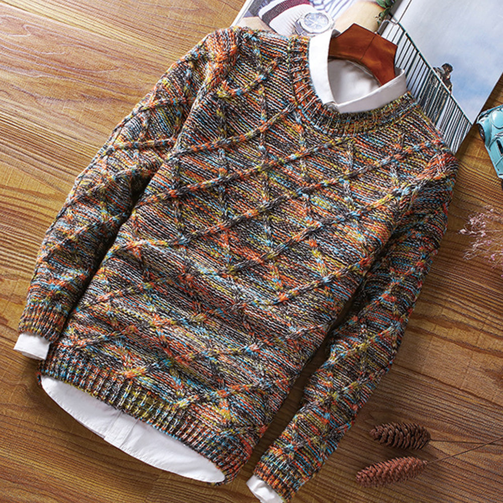 Men's round neck thickened slim trendy sweater Features: 🍪Comfortable fabric: Made of high-quality acrylic fabric, soft to the touch, skin-friendly and lightweight, not easy to fade and deform, not easy to pilling, and more comfortable to wear. Better thermal performance, warmer to wear in winter. 🍪Design: The design o