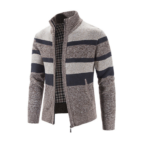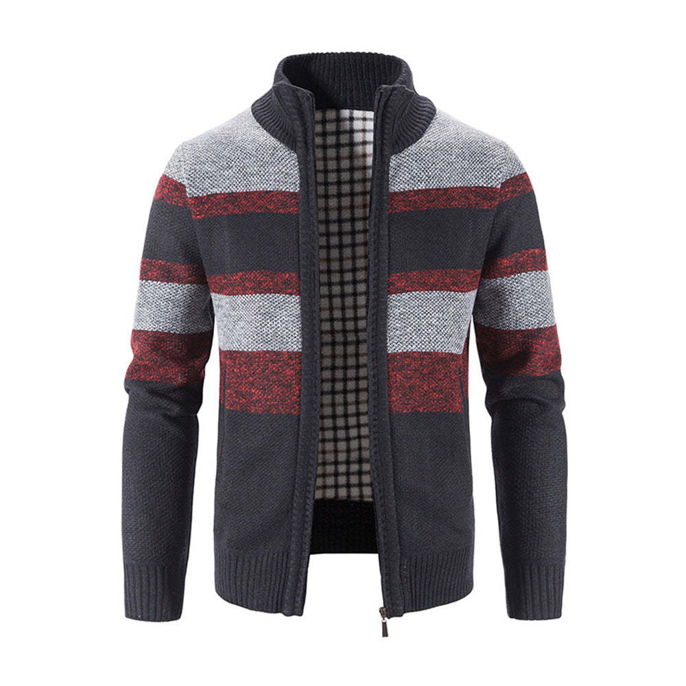 • Men's Fashion Stripe Colorblock Sweater Cardigan Jacket