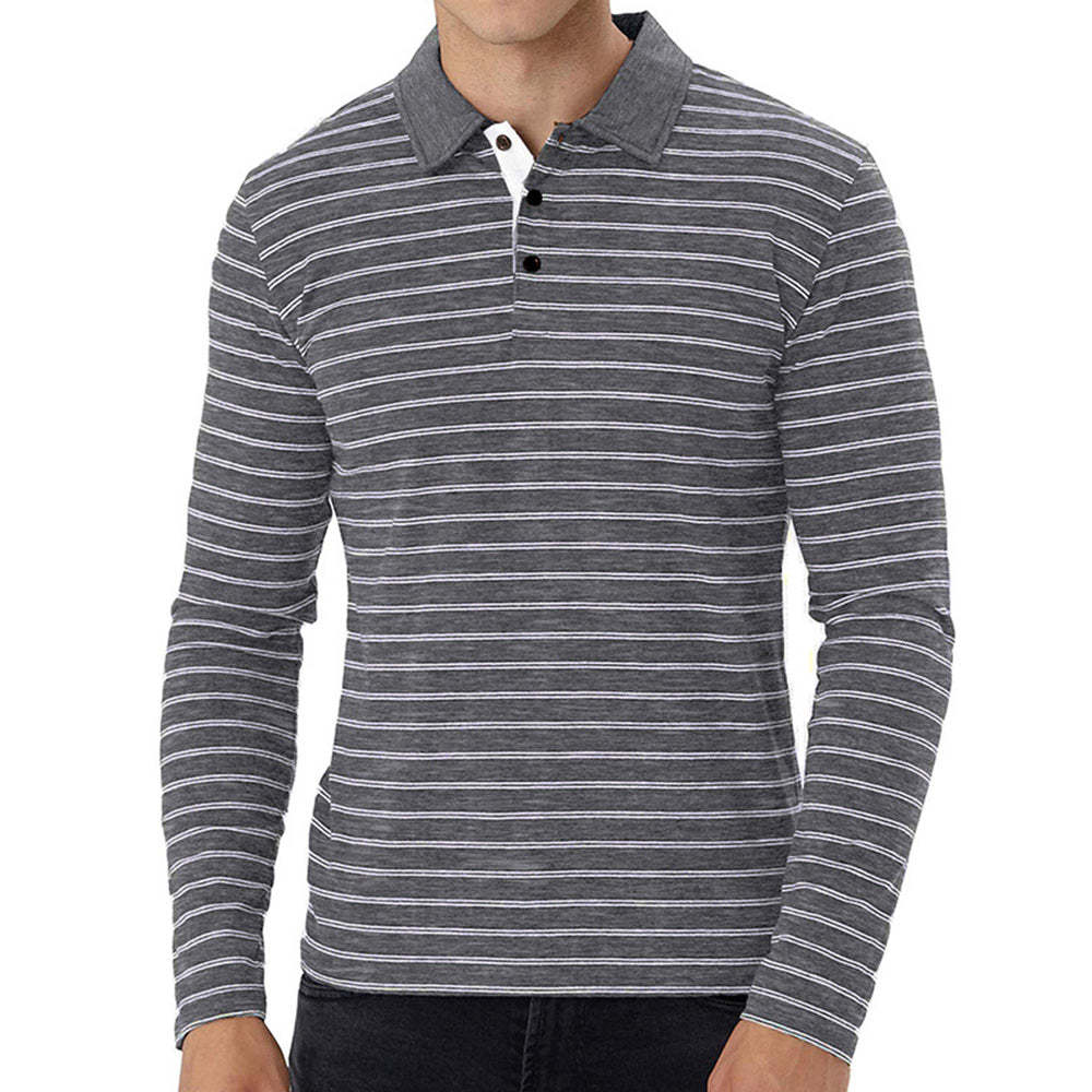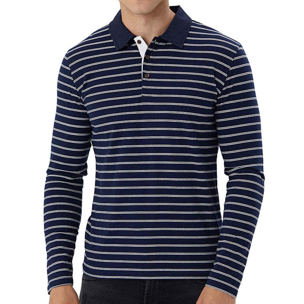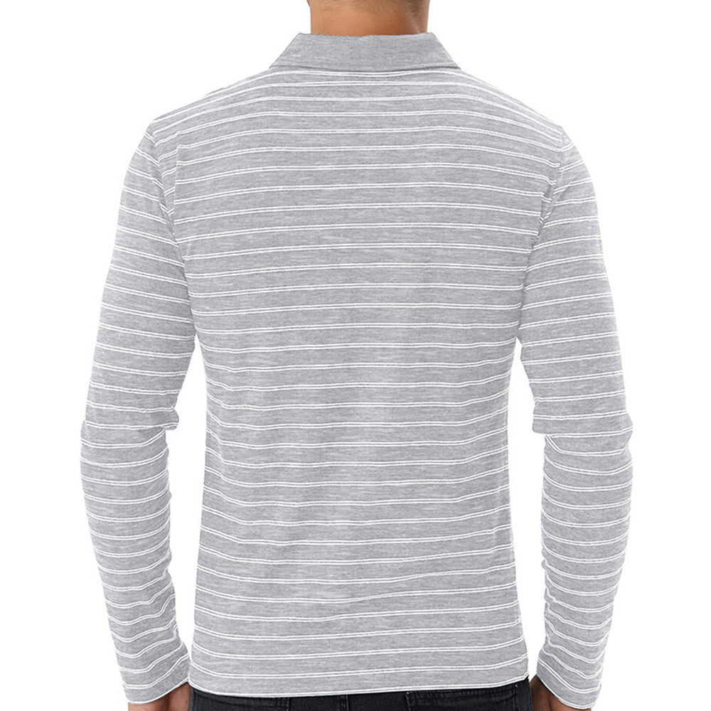 • New Men Striped Casual Breathable Long Sleeve Polo Shirt