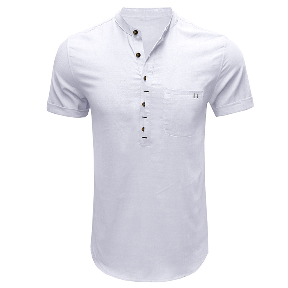 1* Solid Color Henley Collar Short Sleeve Shirt
