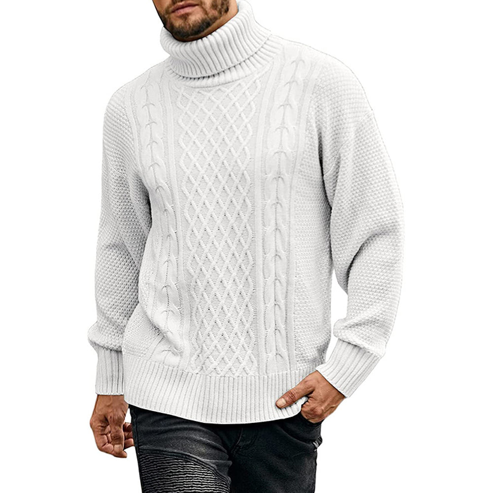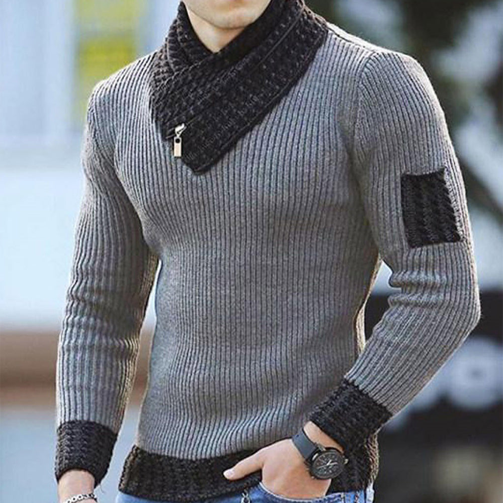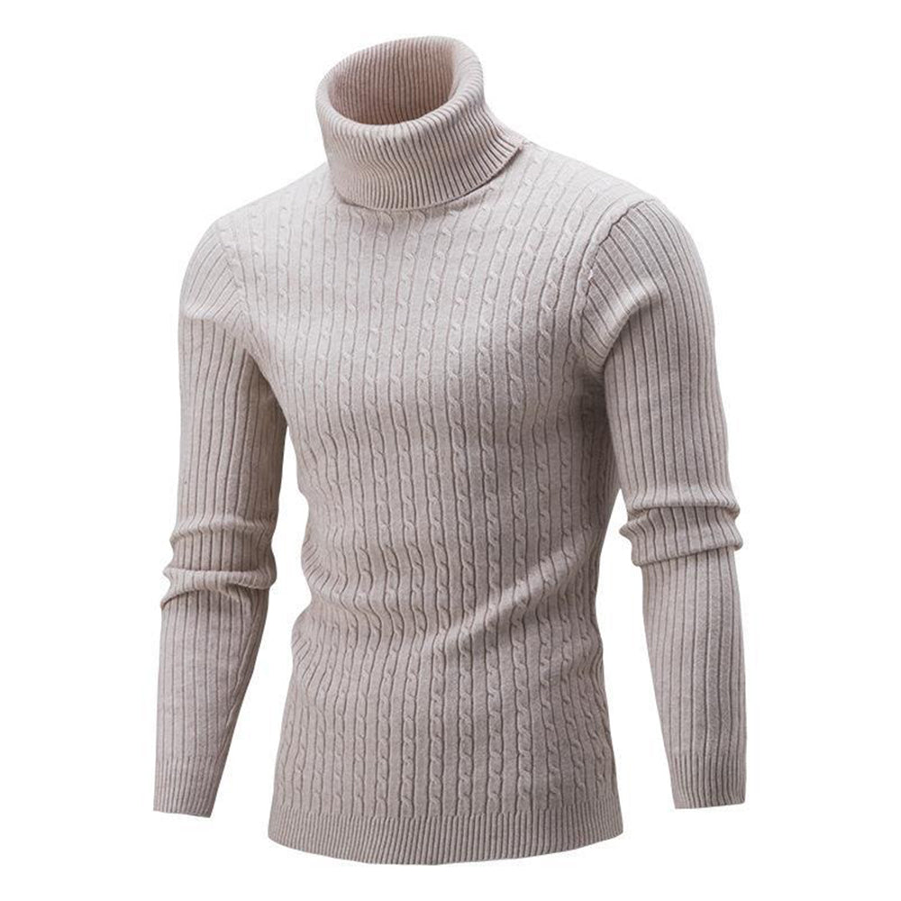 Men's Turtleneck Sweater Scarf Collar Casual Slim Fit Knit Pullover