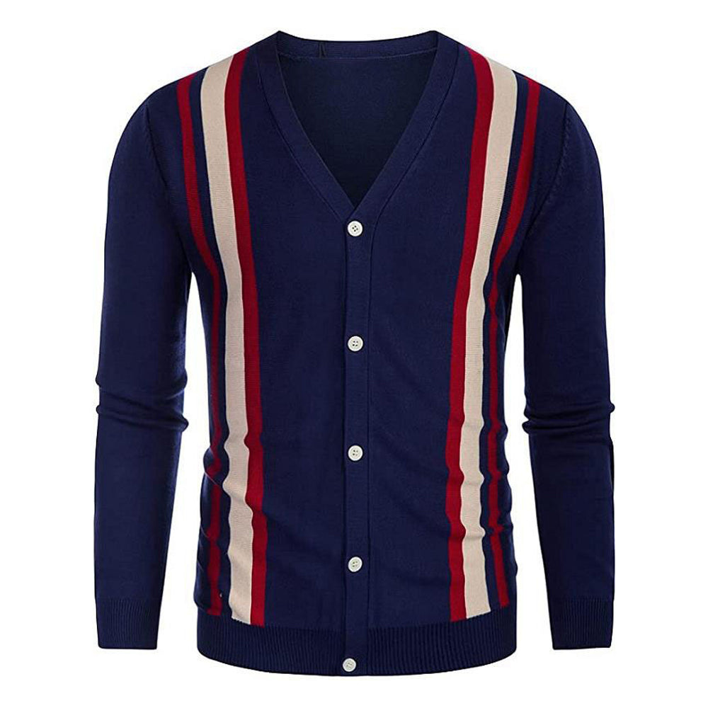 Men's Fashion Stripe Colorblock Sweater Cardigan Jacket