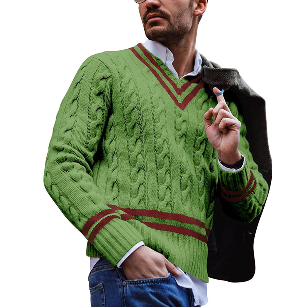 Autumn/Winter Men's V-Neck Striped Colorblock Sweater